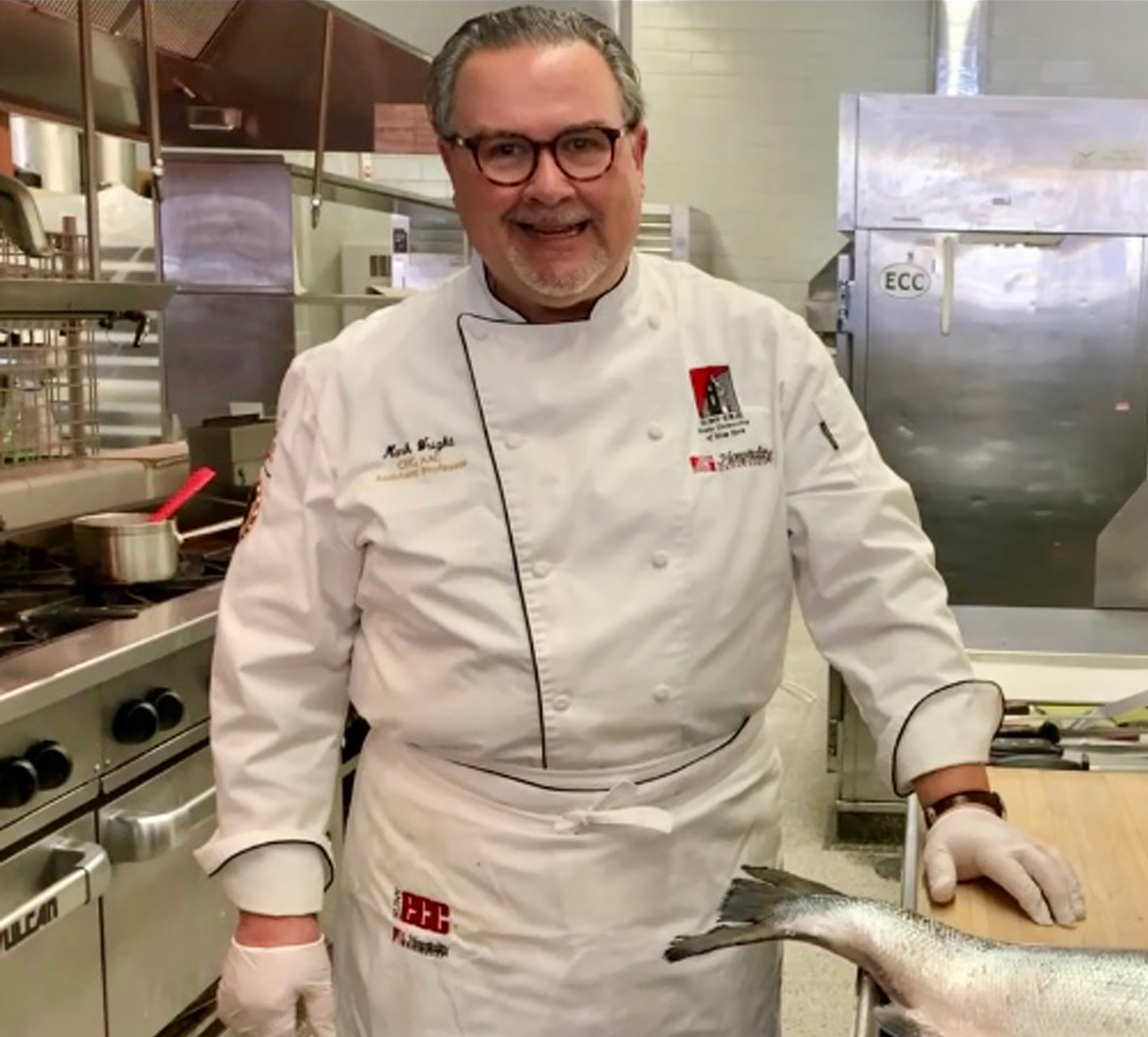 April 16, 2021 – Chef Mark Wright, retired Associate Professor and Department Chair in the Hospitality Management Department at Erie Community College North Campus in Buffalo New York; the Chaîne des Rôtisseurs Conseiller Culinaire Provincial for the Northeast Province; current American Culinary Federation (ACF) National Secretary; and candidate for ACF President, has nurtured hundreds of young culinarians in the last 40 years, first in kitchens and then in classrooms. Having compassion for his students gave him a little bit of a “softie” reputation but the proof as they say is in the pudding. Many of his students are achieving at the highest levels within the culinary profession and still seek out his advice to this day. “You catch more flies with honey than you do with vinegar. I must have done something right,” Chef Wright said to Chaîne during an April 8, 2021 telephone interview.
