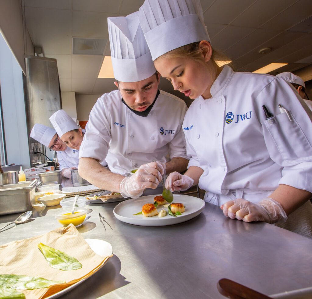 JWU, a NCAA Division III school, now has more than 8,000 students enrolled in more than 100 undergraduate, graduate, and online programs. Known worldwide for their culinary arts programs, JWU students at its 170-acre main campus in Providence can earn an associate, bachelor and master’s degrees in the College of Food Innovation & Technology. Bachelor and master’s degrees are offered within their College of Hospitality Management.